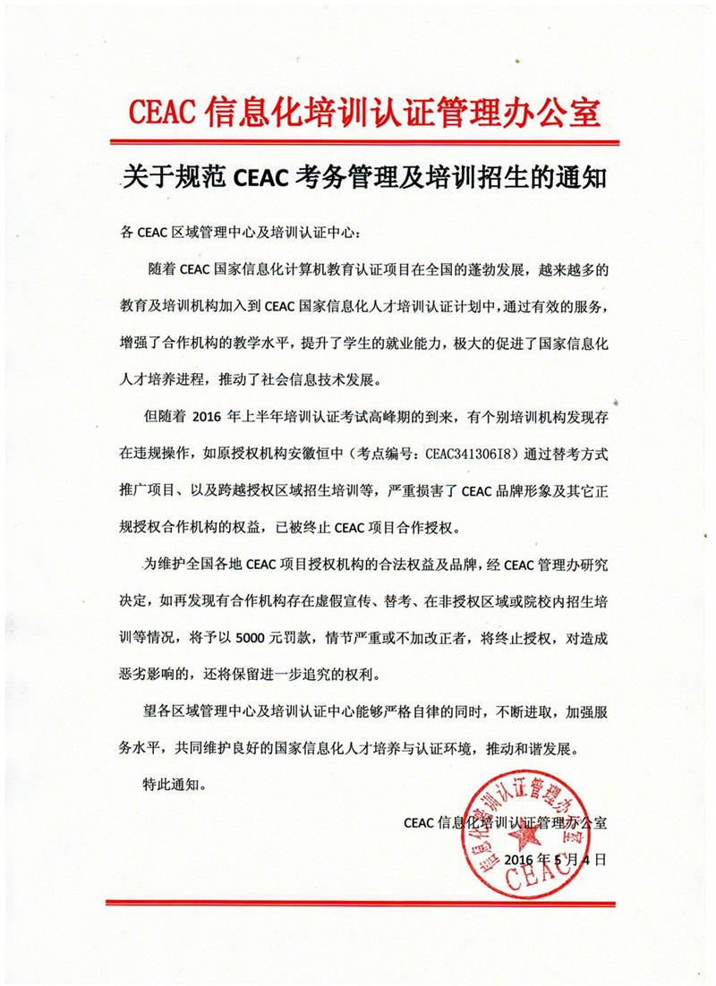 关于规范CEAC考务管理及培训招生的通知